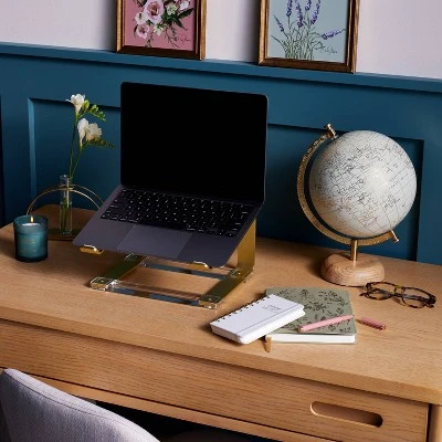 Work in comfort with your laptop at the right height with the Acrylic Laptop Riser from Threshold™. This gold-tone laptop riser features an acrylic base for easy placement on any tabletop. Designed to fit laptops up to 17 inches, this ergonomic laptop riser makes a perfect addition to your home office or study area.