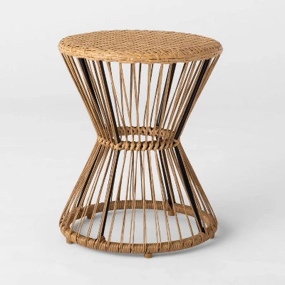 Give your patio or deck the perfect update with the warm, rustic flair of this 3-Piece Mulberry Patio Chat Set from Opalhouse™ dressing up your outdoor setting. Sturdy yet stylish, this three-piece patio set features a stainless steel frame wrapped snugly in faux-rattan, and includes two armchairs that can be clustered around the coordinating round accent table. The semicircular armchairs come in a cozy wingback style with raised sides, while the allover woven pattern lends decorative flair to the whole. Thick seat and back cushions just add to the cozy-comfy seating experience. The round accent table comes with a matching faux-rattan tabletop and an hourglass frame, making it the perfect spot to rest beverages and snacks.