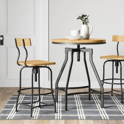 Bring some industrial flair to your dining space with this Woodsboro Dining Table from Threshold™. Featuring a black metal frame and a dark-finish wooden top, this round dining table makes for a convenient surface whether you’re drinking your morning coffee or eating some lunch. The top connects to the metal frame via an adjustable piece, helping you find the right height for eating, working or gathering around the table with family.